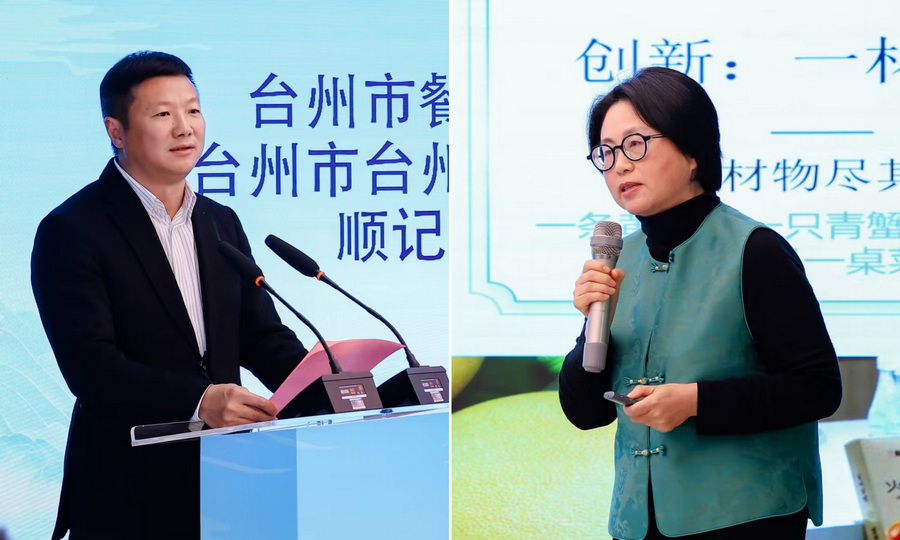 台州市餐饮行业协会会长、台州市台州菜文化研究会会长、顺记餐饮创始人王兴友分享了台州菜的发展历程与台州餐饮人未来行动方向,作家、台州菜文化研究会总顾问王寒以《台州菜从破圈到出圈》为题,解读台州菜的文化底蕴与独特风味。(中国烹饪协会供图)